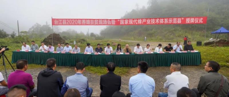 9月8日,貴州省臺江縣2020年養蜂扶貧現場會暨“國家現代蜂產業技術體系示范縣”授牌儀式在臺拱街道紅陽村地質公園大門口舉行。