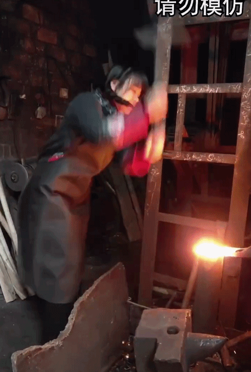 別說姑娘家嬌生慣養能有什么力氣,她還能打鐵,咬上一根麻花辮,上來就一頓猛干!