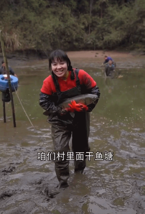 她可以輕松地在齊膝的泥水里趕牛耕田,一個人能輕松地拎起一整只小豬仔,或者兩筐谷子,絲毫不遜于男人,干著農活還不忘搞怪,讓人敬佩的同時還有點反差萌。